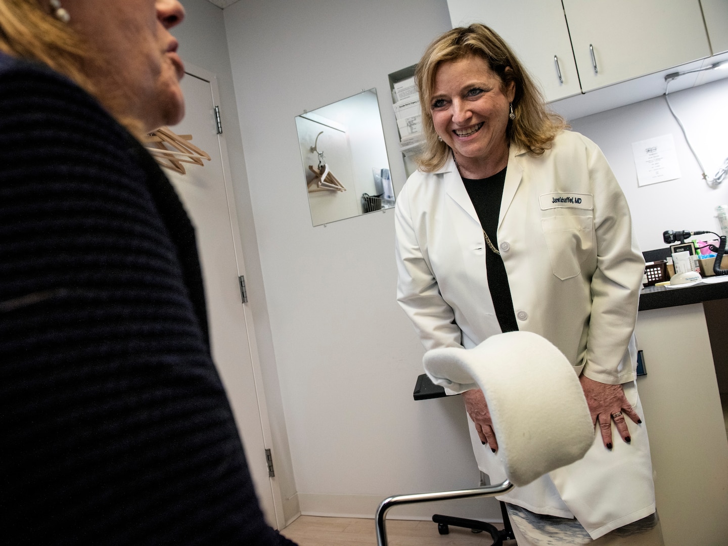 Janet Schaffel, who co-runs one of the last remaining women-run OB/GYN private practices in Washington, consults with a patient.