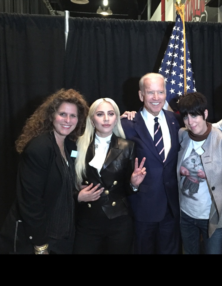 Bonnie Greenberg (left), Class of 1973 with Lady Gaga Joe Biden and Diane Warren.