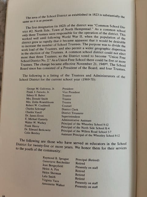 Writes Robert Holley (1958) - “Despite many hours of research, I am still not terribly certain about how/why our high school got named ‘Wheatley’ or ‘The Wheatley School.’ There must be some sort of 1954-55 East Williston School Board minutes on which one could lay hands to get some insight. Someone must know our actual naming history! Maybe an East Williston local can discover some 1950s vintage official school board minutes, or the like, that would yield a clue to the ‘Wheatley’ naming. Seems like this would make an excellent research project for a current Wheatley history or civics class (hoping that they still study those subjects!)