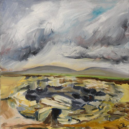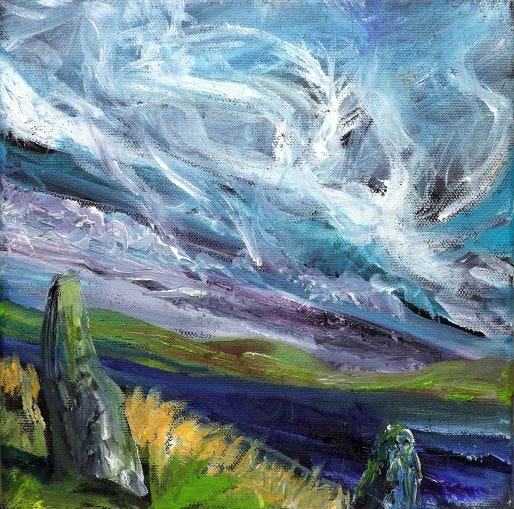 The imminent closure increases the significance of my OVER THE EDGE: Brush and Paint Beside Trowel and Stone exhibition. I have been a volunteer at the site since 2011 and one of the artists in residence since 2018. These artworks will be of even greater value after the Ness of Brodgar (sadly) closes. All of the creative endeavors inspired by this site will be something to cherish. Note that I am donating most of the proceeds to two local charities.
