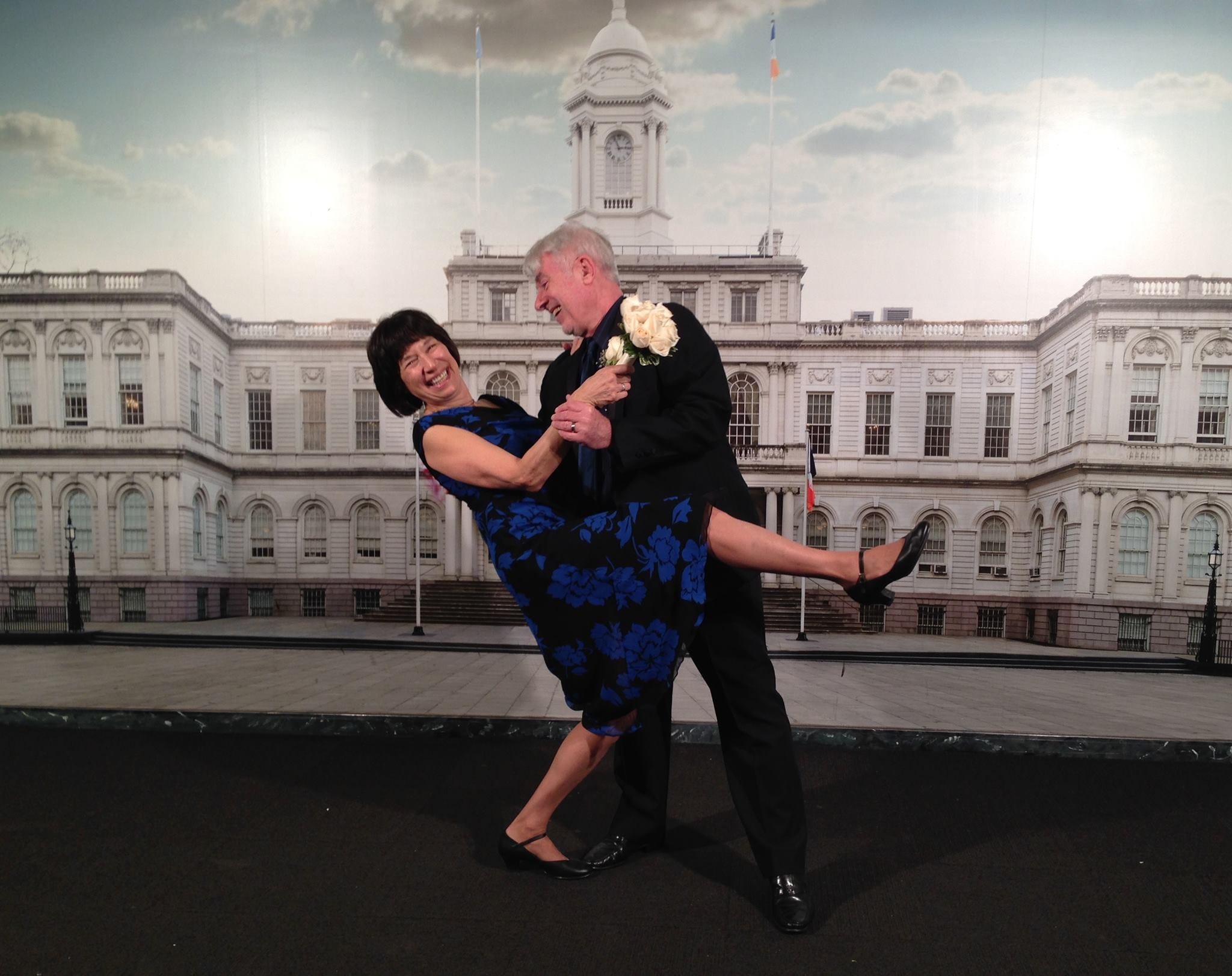 Wheatley Alumni Association Newsletter # 10 and Wheatley Alumni Association Newsletter # 65 told how I met Roslyn High School Senior Laurie Lefferts in 1966, explaining that we split up the next year and only reconnected in 2006. It then took us another six years to marry. One of her hobbies is dancing and the photograph below was taken at City Hall that very day. It’s been a little more than 10 years. Nothing to impress those of you who have been married for dozens of years. And no worries, we don’t intend to beat any records.”