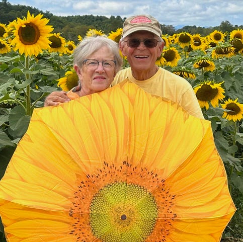Writes Mary Lee - I decided to take Art up on his challenge to write something before I croak and people are reading my obituary. First off, I am truly thankful to Wheatley for my meeting Andy Cerillo, my husband of almost 57 years, when I was a freshman. I am sending a recent photograph of us standing in a sunflower field at the Biltmore Estate in North Carolina. Andy attended Wheatley from the 7th grade to his junior year and then went to Valley Forge Military Academy in Wayne, Pennsylvania.