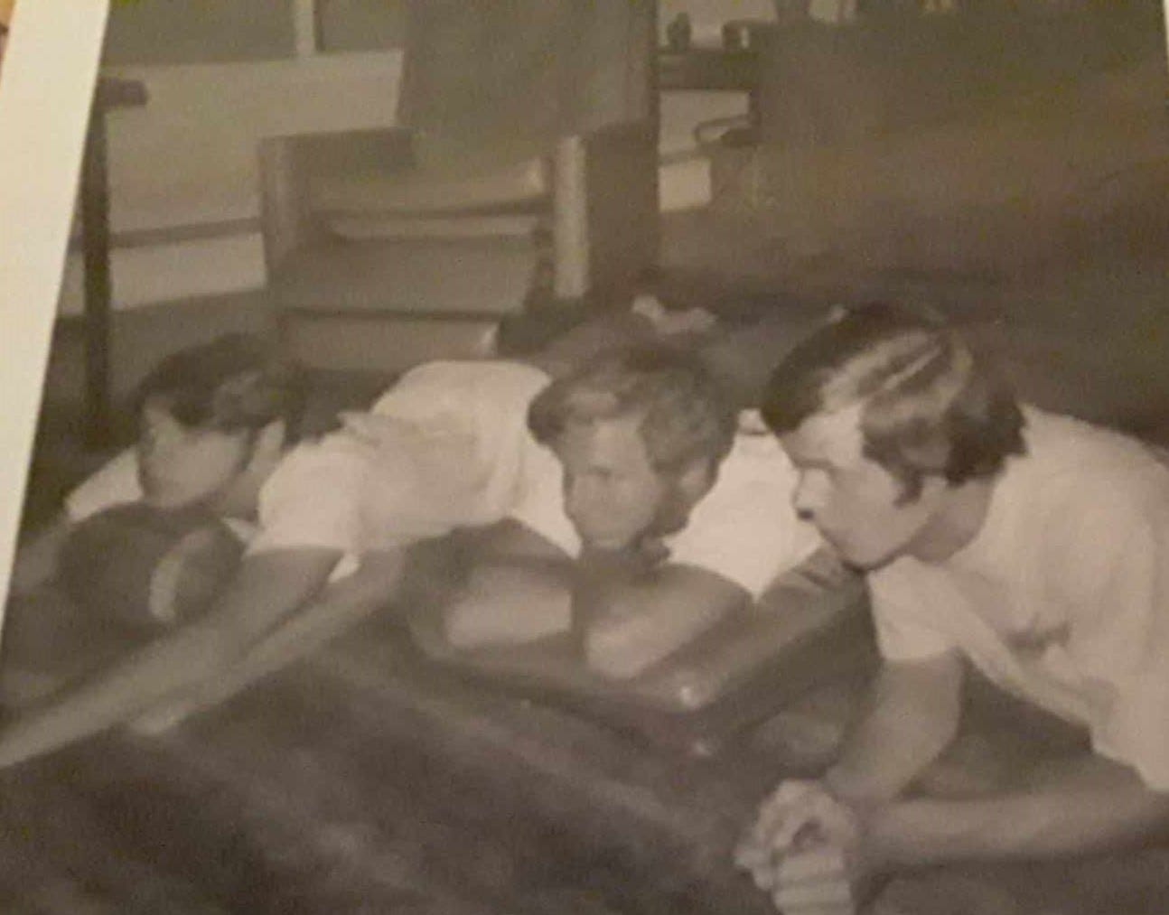 a picture of me, Peter, and Scott Bond in Peters’ house watching TV. Not sure