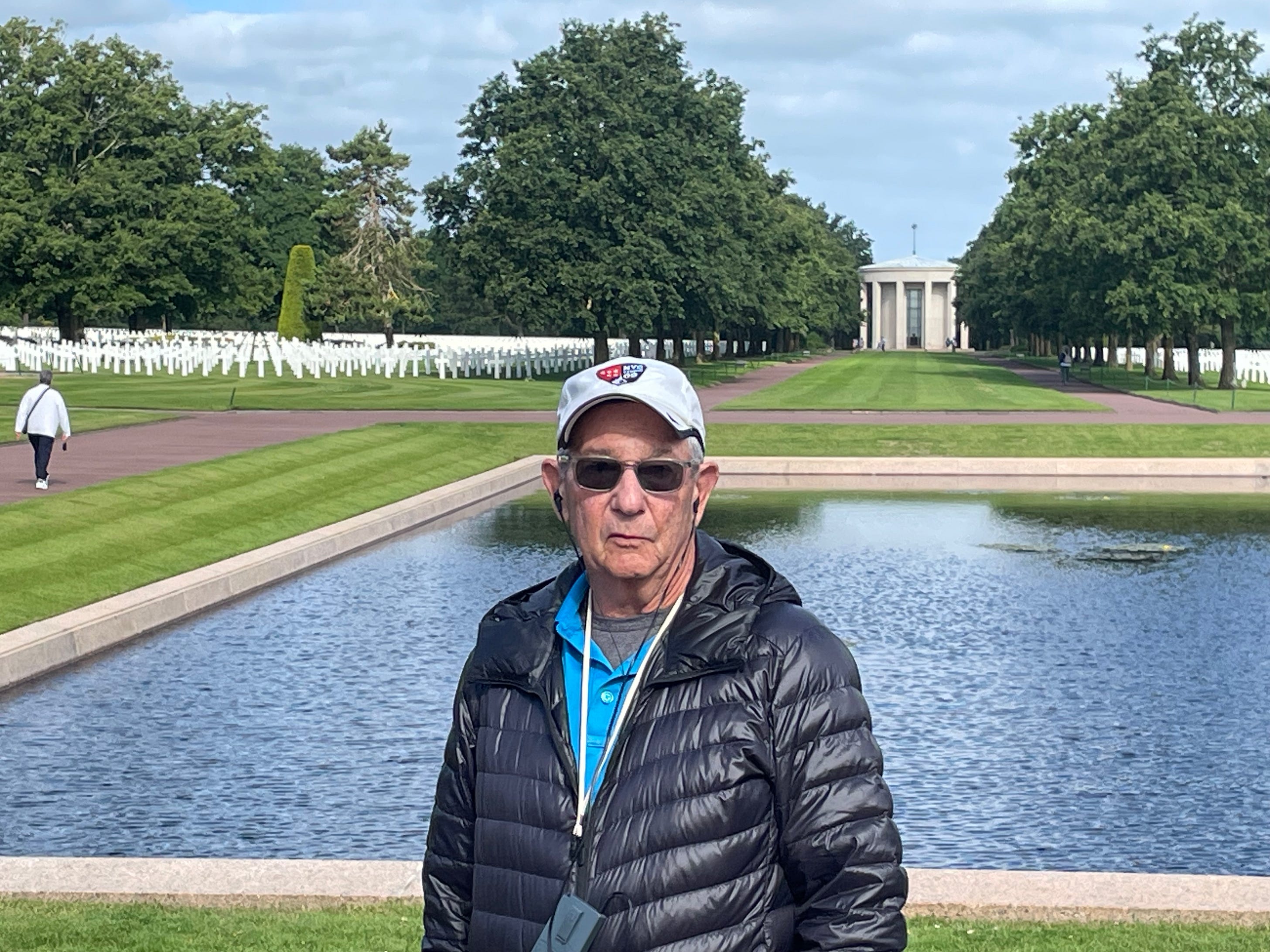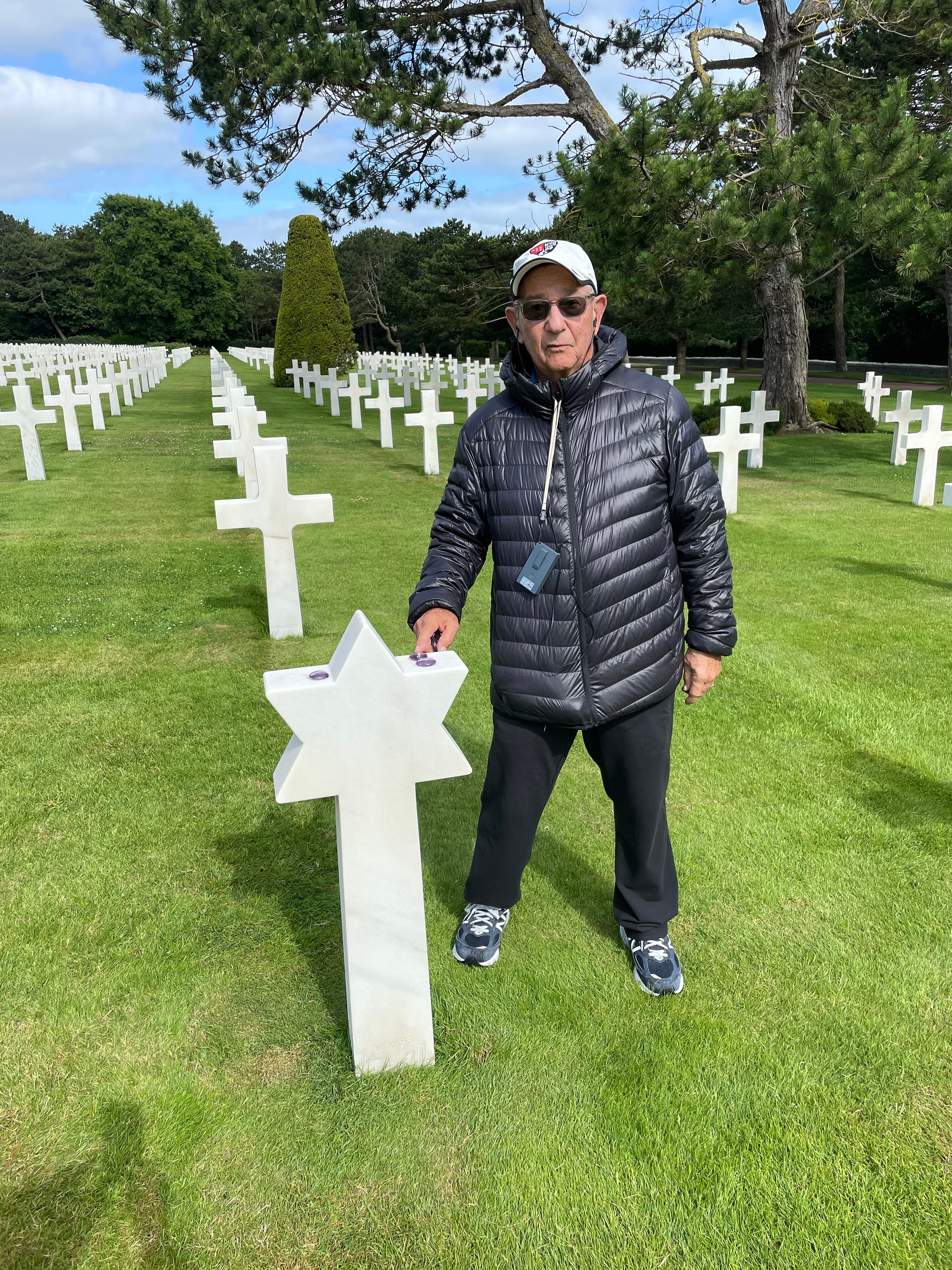 That’s me in Normandy, France, at Omaha Beach, the location of fierce fighting on D-Day, standing by the grave of a Jewish soldier.
