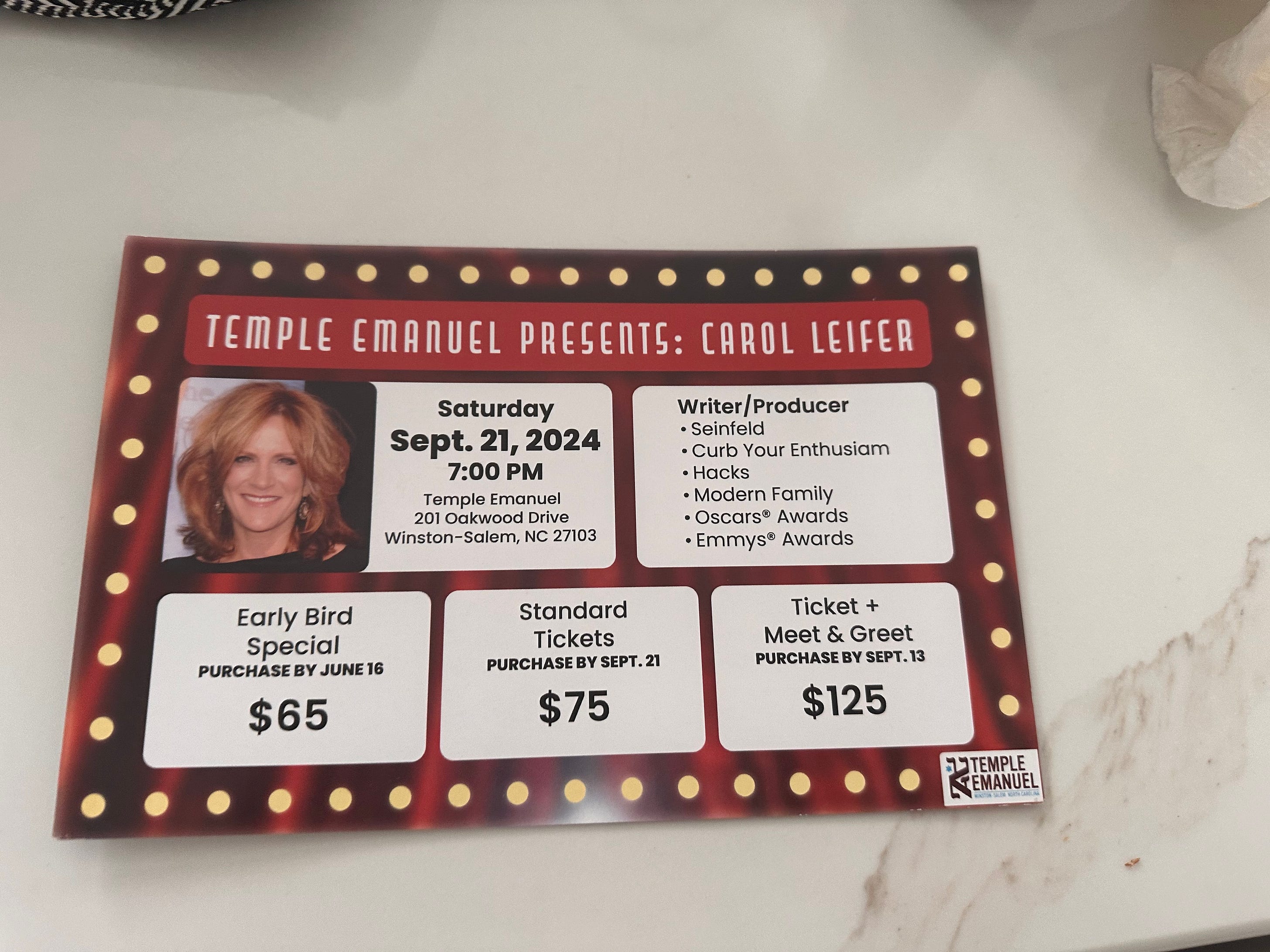 friends, SABOR BRASIL SETS AT 4:00 PM AND 6:00 PM JAZZ FORUM The Jazz Forum is just a ten-minute walk from the Tarrytown Metro North Station, just two blocks from Main Street in Tarrytown. An Evening With Carol Leifer (1974) at Temple Emanuel, Winston-Salem, North Carolina on September 21, 2024, 7:00 PM