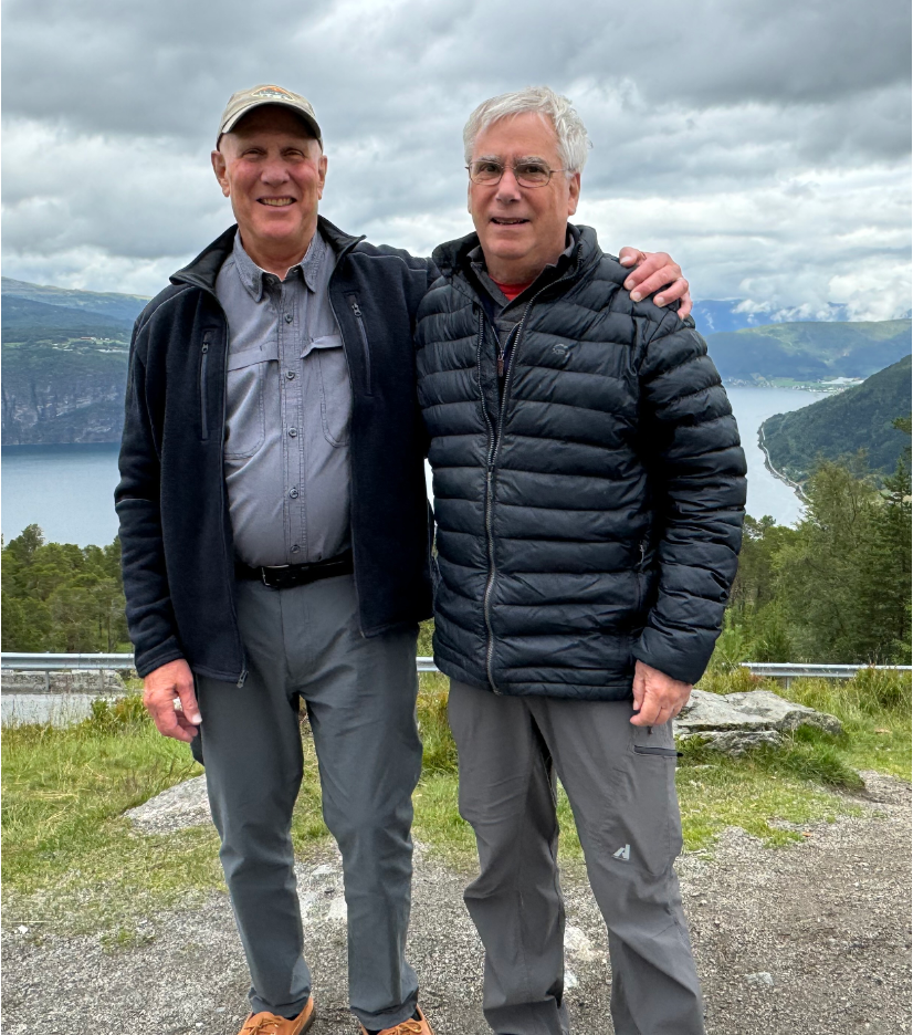 I am seventh from the left, with a blue baseball cap with white stripes, in a group standing in front of Mont-Saint-Michel. 1967 - Ken Janowitz and Jeff Kraman - Scandinavian Connection Writes Ken - “Art, file this under surprise encounters - My wife, Jan, and I were traveling with a tour group to Scandinavia. On the first night, the tour hosts a get-to-know-each-other welcome dinner. We were sitting with several other couples going around introducing ourselves. After I introduced Jan and myself, I heard “Kenny Janowitz, your father made coleslaw” from one of the other couples. Surprised, I asked how he knew me. It turns out he lived on Barnyard Lane, whereas I lived on Horseshoe Lane. We both went to the Willets Road School and then to Wheatley. Jeff Kraman and I spent the rest of dinner sharing stories about friends we had in common, the Country Club, and changes in the community since we moved away. Reconnecting was wonderful. Who would ever have thought that you had to travel to another continent to find someone from your own backyard.”