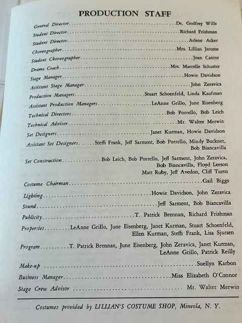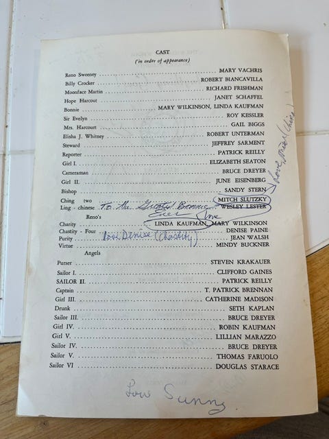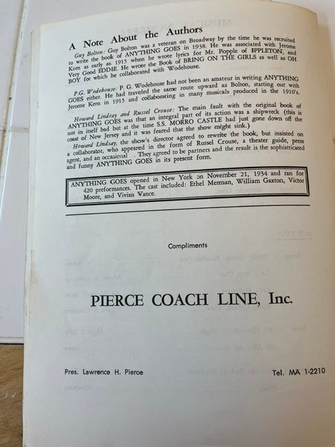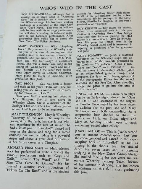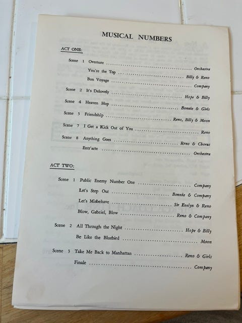 ‘Anything Goes’ as performed at Wheatley in 1971 or 1972. The program