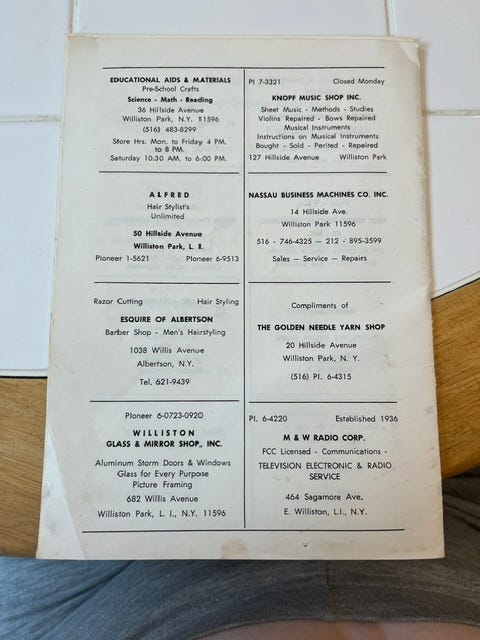 commentary), East Hills Pharmacy (owned by the family of my classmate,