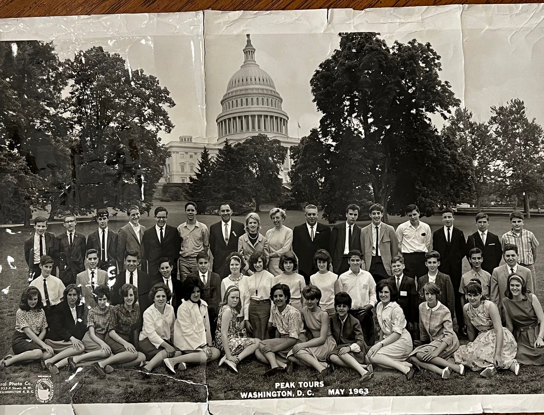 Paula Panzeca Foresto (1969) Writes - I came across this photo recently and thought fellow alumni might enjoy a walk down Memory Lane. My future husband, Dom, can be seen kneeling in the 2nd row, 3rd person from the left (dark jacket, big smile). Mr. Goldwasser, who ran Peak Tours, is in the top row, wearing a dark suit, white shirt, and tie, just to the right of the two women toward the center.