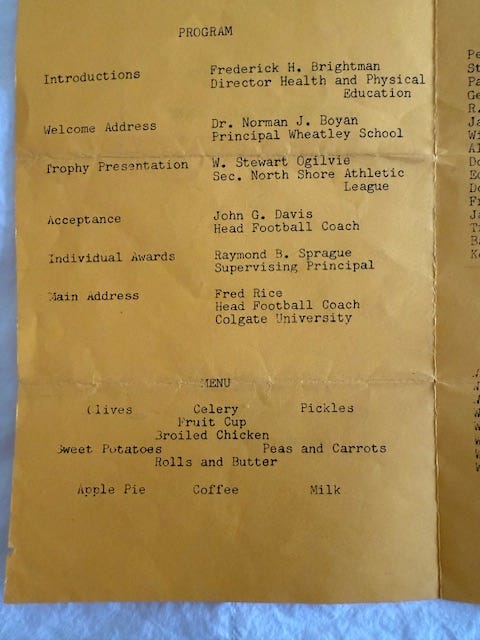 If only we could gather our remaining gridiron greats and present this memorabilia to the Administration in a meeting to generate interest not just in the sport of football but also in our school's history. If Carle Place and East Rockaway, both schools smaller than Wheatley, can support football programs, then we should be able to as well. Just sayin'.