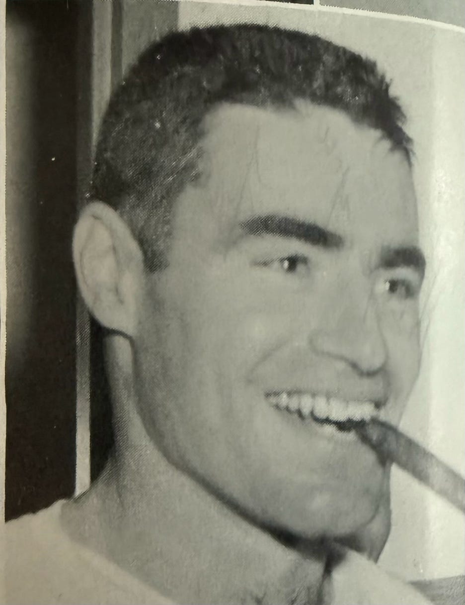 The unquestionable leader of the team was quarterback Steve Perlin (1958), who died in 1967 while flying a Marine Corps fighter jet. From the very first day back in 1956, he, among all the seniors on the team, was “The Guy.” I can tell you that this senior group, hardened by a year in Mineola High School, was tough, cocky, and talented. I won’t dwell on the ‘character’ of many, but there is a story about each one that is unique. I think both Mr. Davis and Mr. Lawson knew what they had and understood that they had to maintain a firm hand. Many of us had been in ‘scrapes’ the previous year, sometimes pushing the proverbial envelope, landing a few of us in Mr. Wathey or Dr. Boyan’s office.