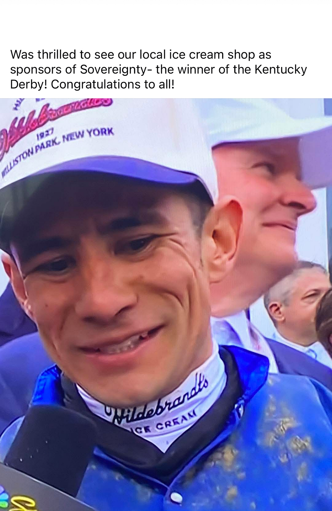 Hildebrandt’s, Williston Park’s legendary ice cream parlor, was a sponsor of 2025 Kentucky Derby winner Sovereignty.