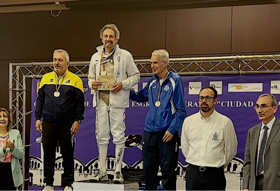 The photos below are from the victory stand at the Spanish Veterans National Championship in Valencia, Spain, in June 2024, where I won both epee and saber in the 70+ championships at the age of 80. I will be in San Sebastián on June 14 of this year to defend my titles.