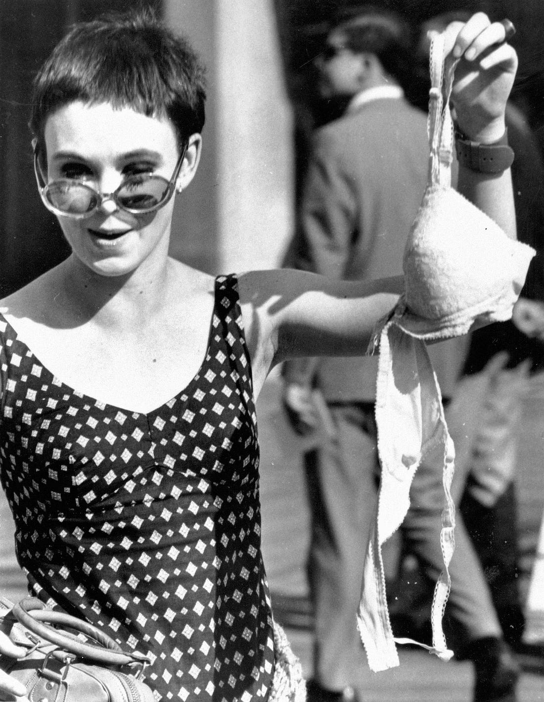 “A member of the Women’s Liberation Party drops a bra into a trash bin to protest the Miss America Pageant in Atlantic City on September 7, 1968. The demonstration ‘felt very joyous and free,’ says Helen Kritzler (1968).”