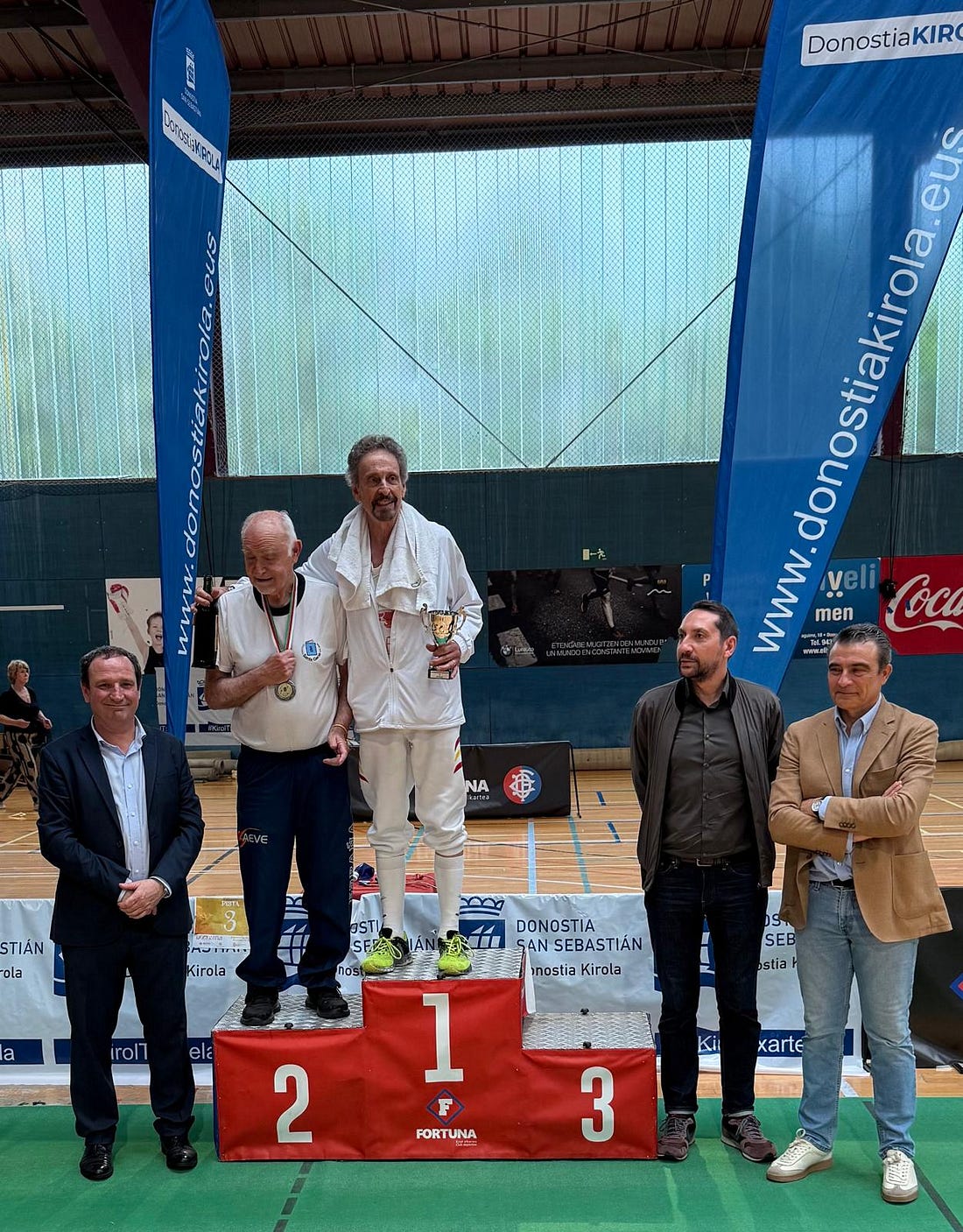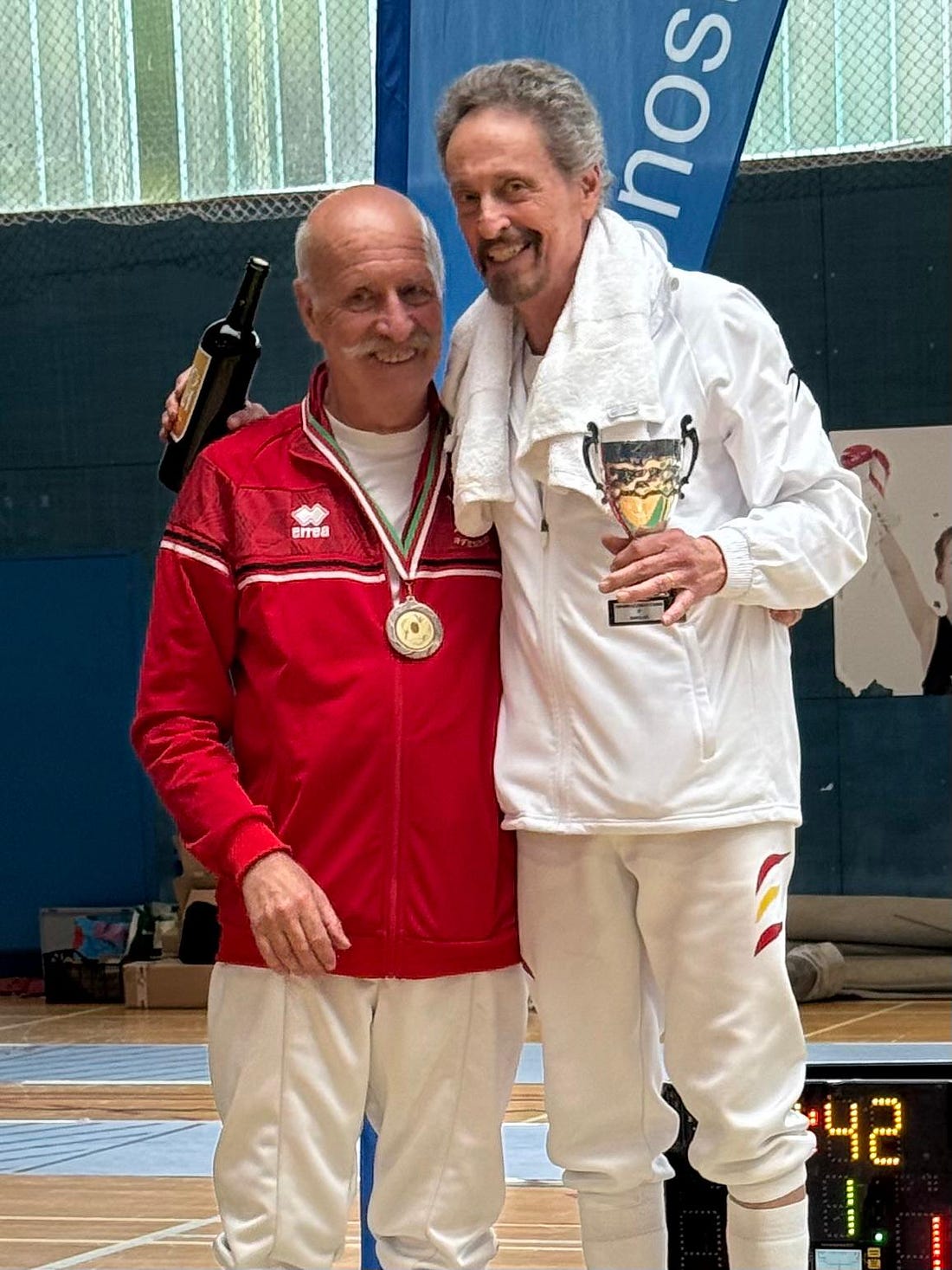 Re: With the spoils — a trophy and a bottle of Basque wine — after winning the 70+ Foil Championship at the Spanish National Veterans Fencing Championships in San Sebastián on June 14, 2025.