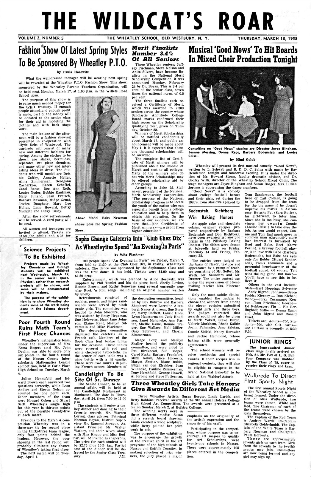 Wildcat’s Roar (March 13, 1958) featured a photograph of Barbara