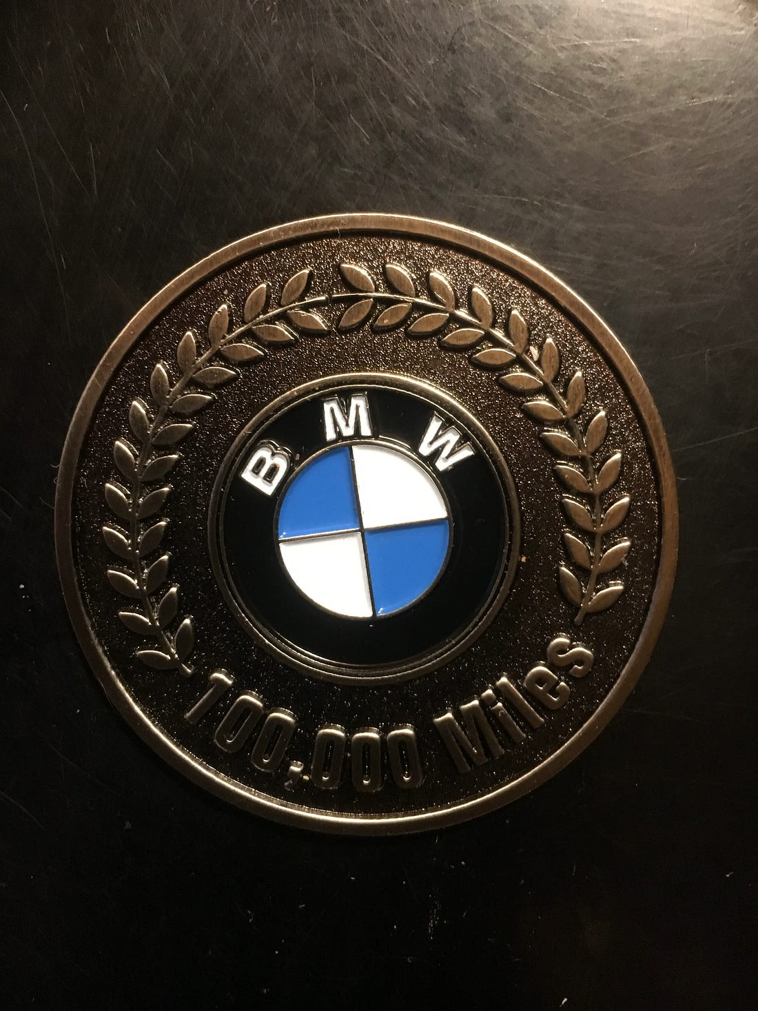 Howard’s first 100,000 mile award from BMW.