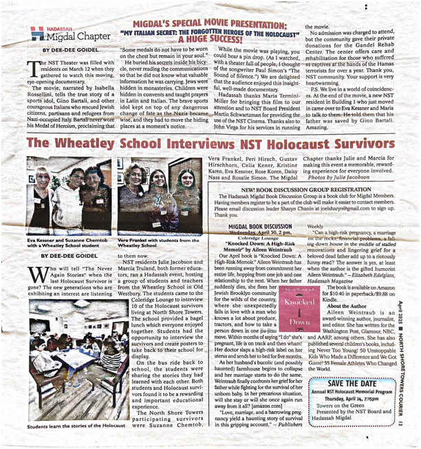 Daisy Nass, and Rosalie Simon. The Migdal Chapter of Hadassah thanks Julie
