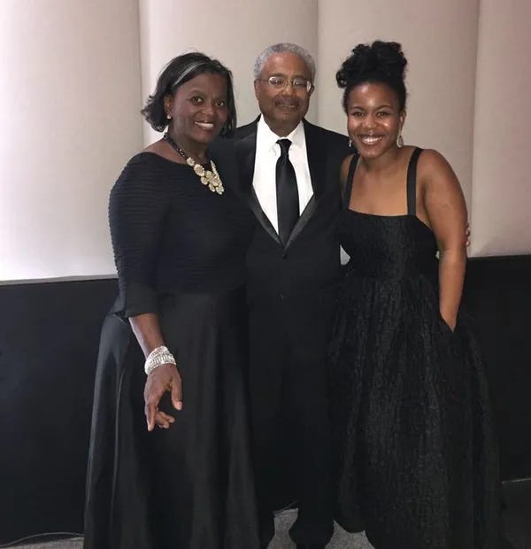 L-R - Licensed Clinical Psychologist Pamela G. Banks, a professor at Jackson State University and chair of its Psychology Department; former Mississippi Supreme Court Justice Fred L. Banks, Jr.; and their daughter, Gabrielle G. Banks, a pediatric licensed clinical psychologist, at a wedding in Washington, D.C., in 2017.