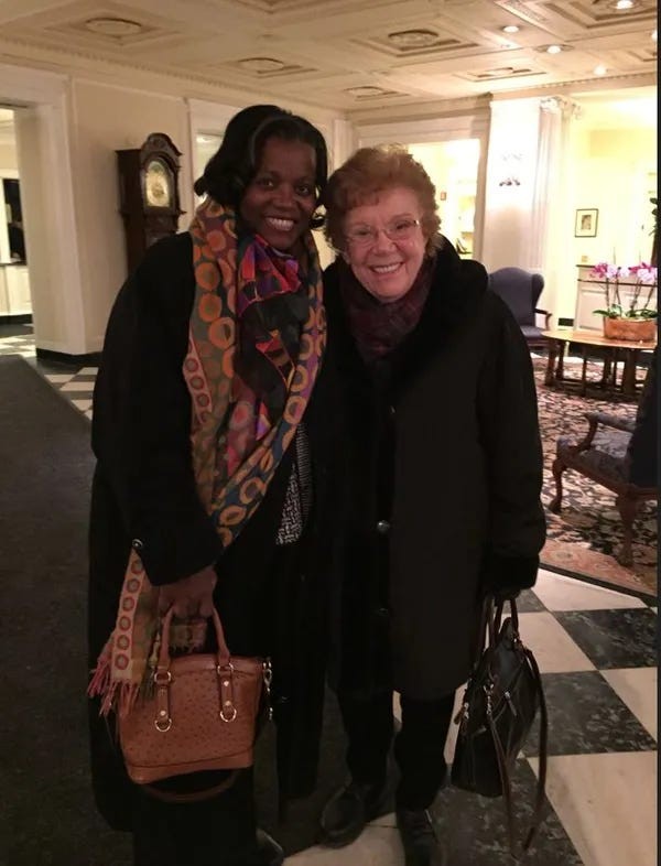 Pamela Banks and her Syosset host mother, the late Jane Perlstein, in NYC in 2015.