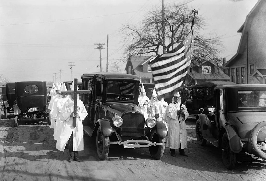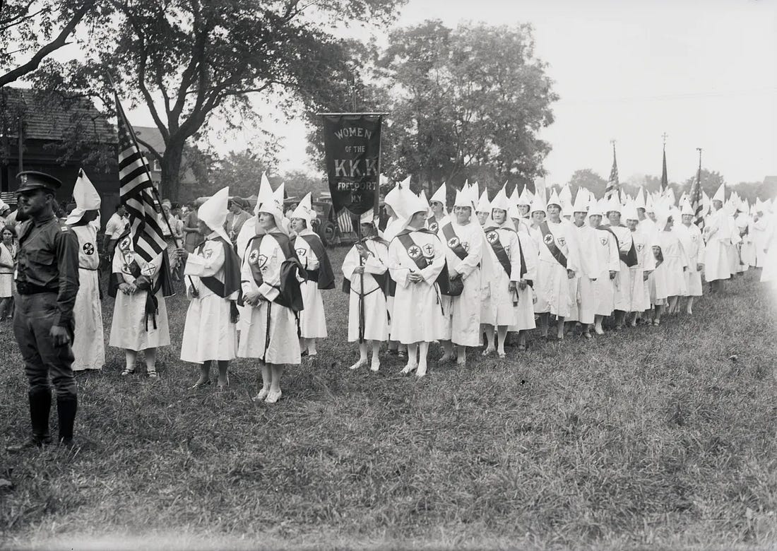 Ku Klux Klans women turn out for a parade in Lynbrook, NY on July 20, 1930